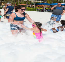A foam party includes most of the same elements that a regular party would; music, dancing and even games. The only difference is that with a foam party, the dance floor will be covered in fun foam, which as you can imagine, gets people into party mode pretty quickly.